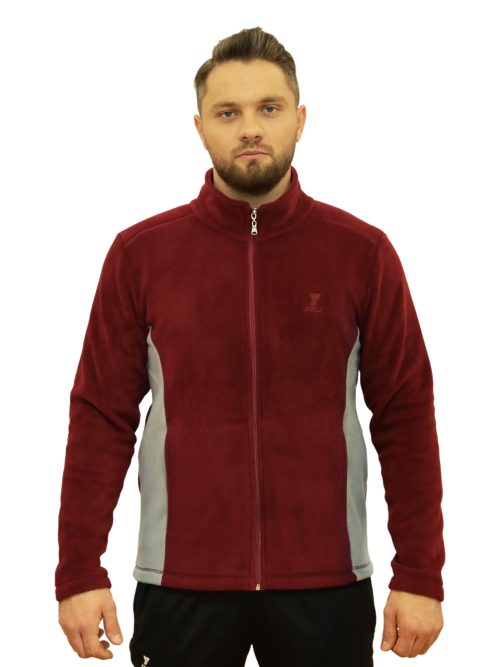 Çift Renk Bordo-Gri Tam Fermuarlı Unisex Polar