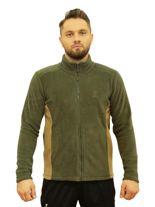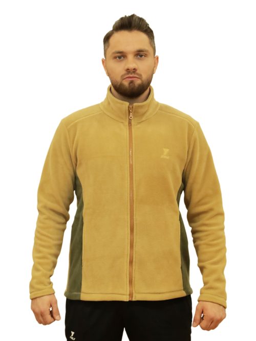 Çift Renk Camel-Haki Tam Fermuarlı Unisex Polar