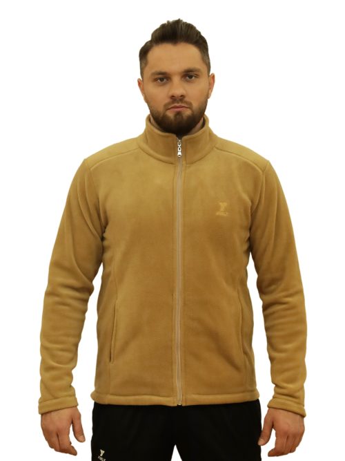 Çift Renk Haki-Camel Tam Fermuarlı Unisex Polar