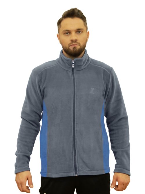 Çift Renk Gri-İndigo Tam Fermuarlı Unisex Polar